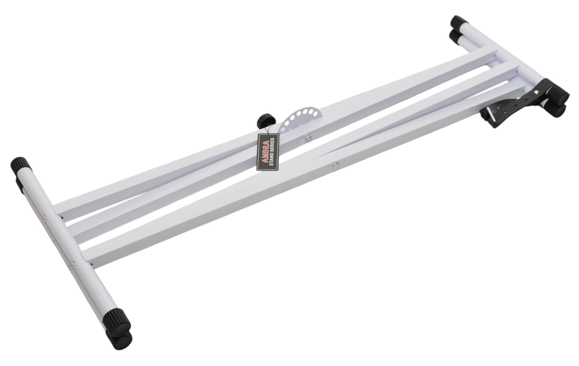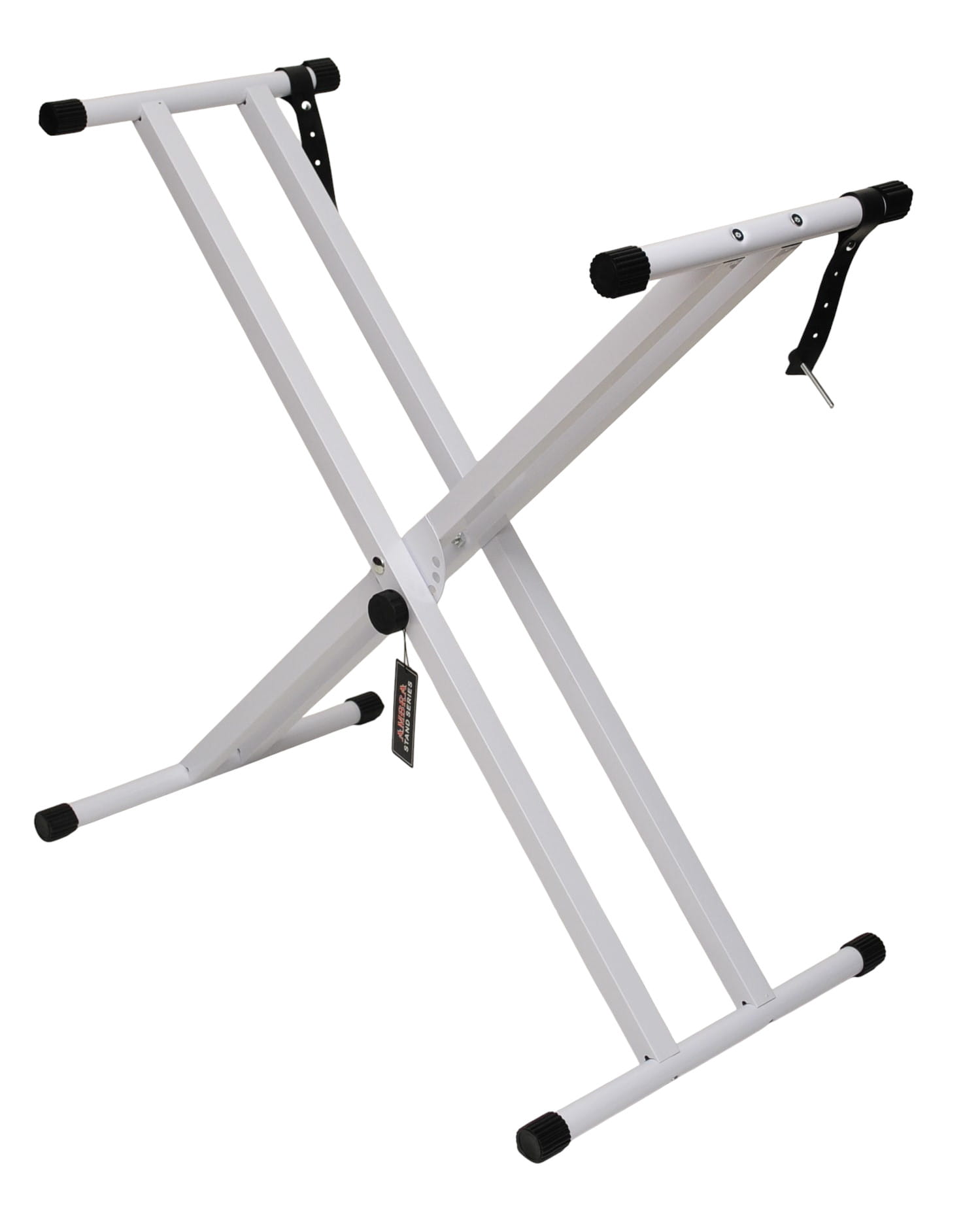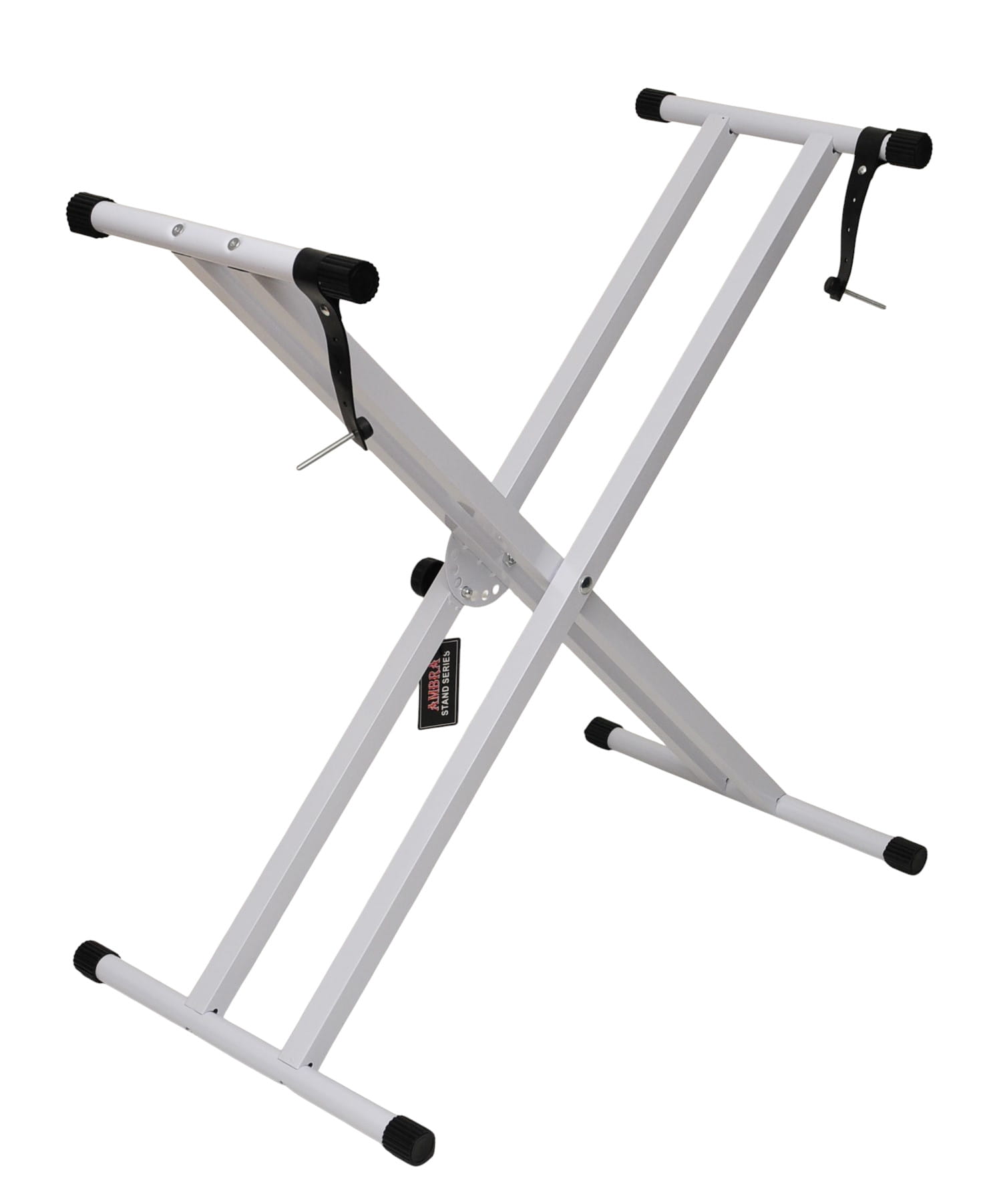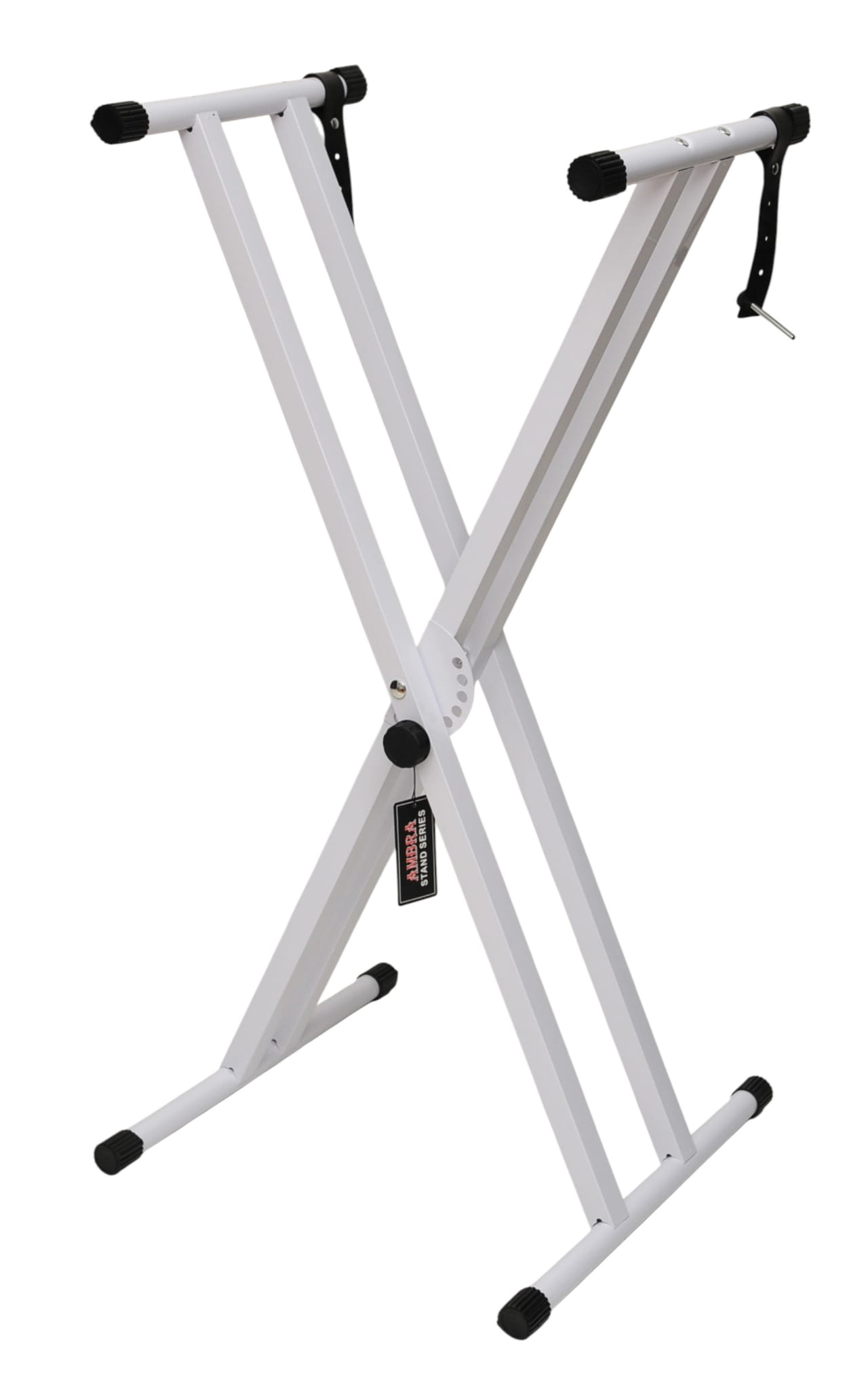 X4 to solidny, składany stojak pod keyboardy, syntezatory, pianina cyfrowe itp. Z naszym statywem nie musisz się martwić o stabilność rozwiązania. Podwójne metalowe profile o dużej nośności wraz z antypoślizgowymi nóżkami gwarantują bezpieczeństwo twojego urządzenia. Statyw Ambra ma duży zakres regulacji wysokości (aż 7) i składaną krzyżowo konstrukcję o wadze własnej około 3 kg. To idealne połączenie stabilności i mobilności produktu.