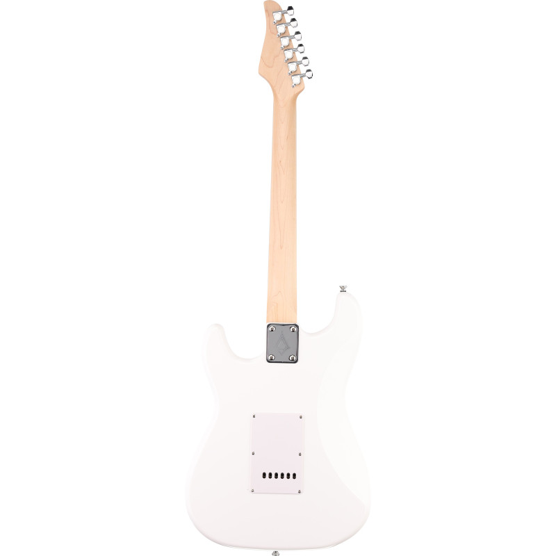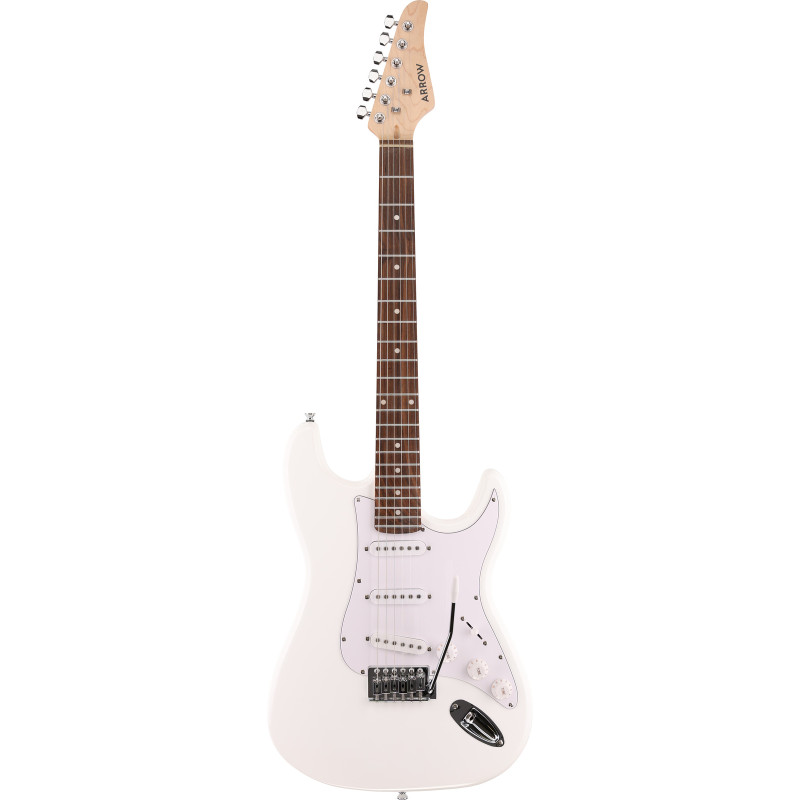 Arrow Tonecaster ST 111 Snow White Rosewood/White to elegancka i uniwersalna gitara elektryczna w klasycznym stylu ST, wyróżniająca się śnieżnobiałym wykończeniem oraz białym pickguardem. Wyposażona w trzy przetworniki single-coil, oferuje szeroką paletę brzmień – od klarownych cleanów po charakterystyczne, rockowe riffy. Podstrunnica z palisandru dodaje brzmieniu ciepła i głębi, a wygodny gryf zapewnia komfort zarówno początkującym, jak i bardziej doświadczonym gitarzystom.