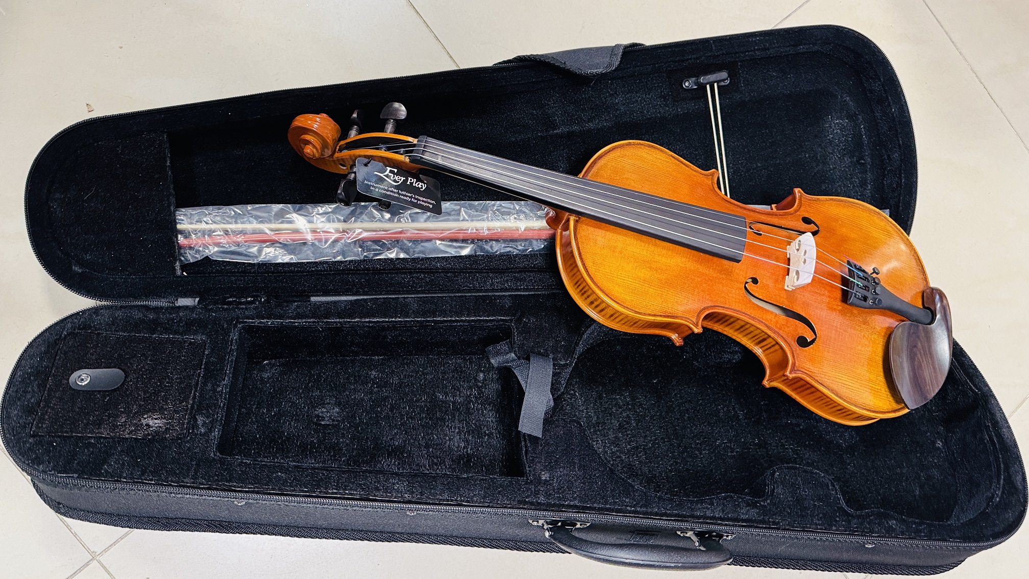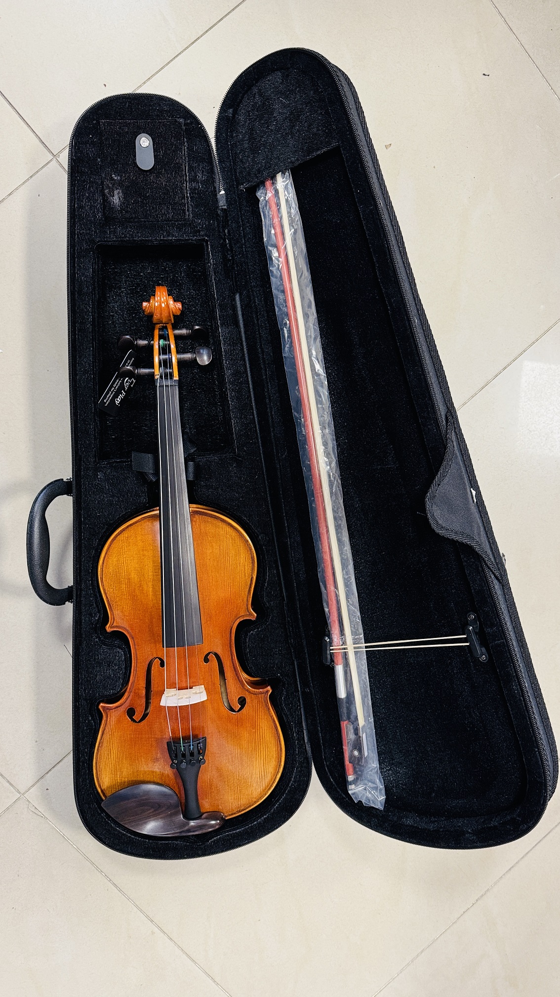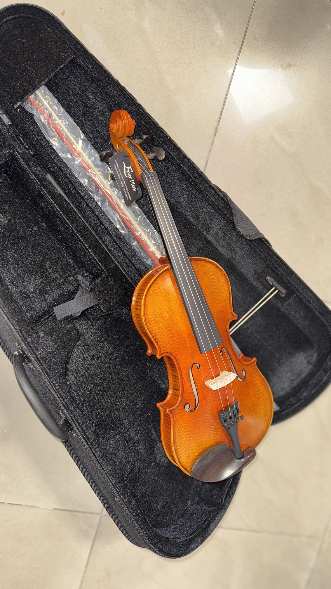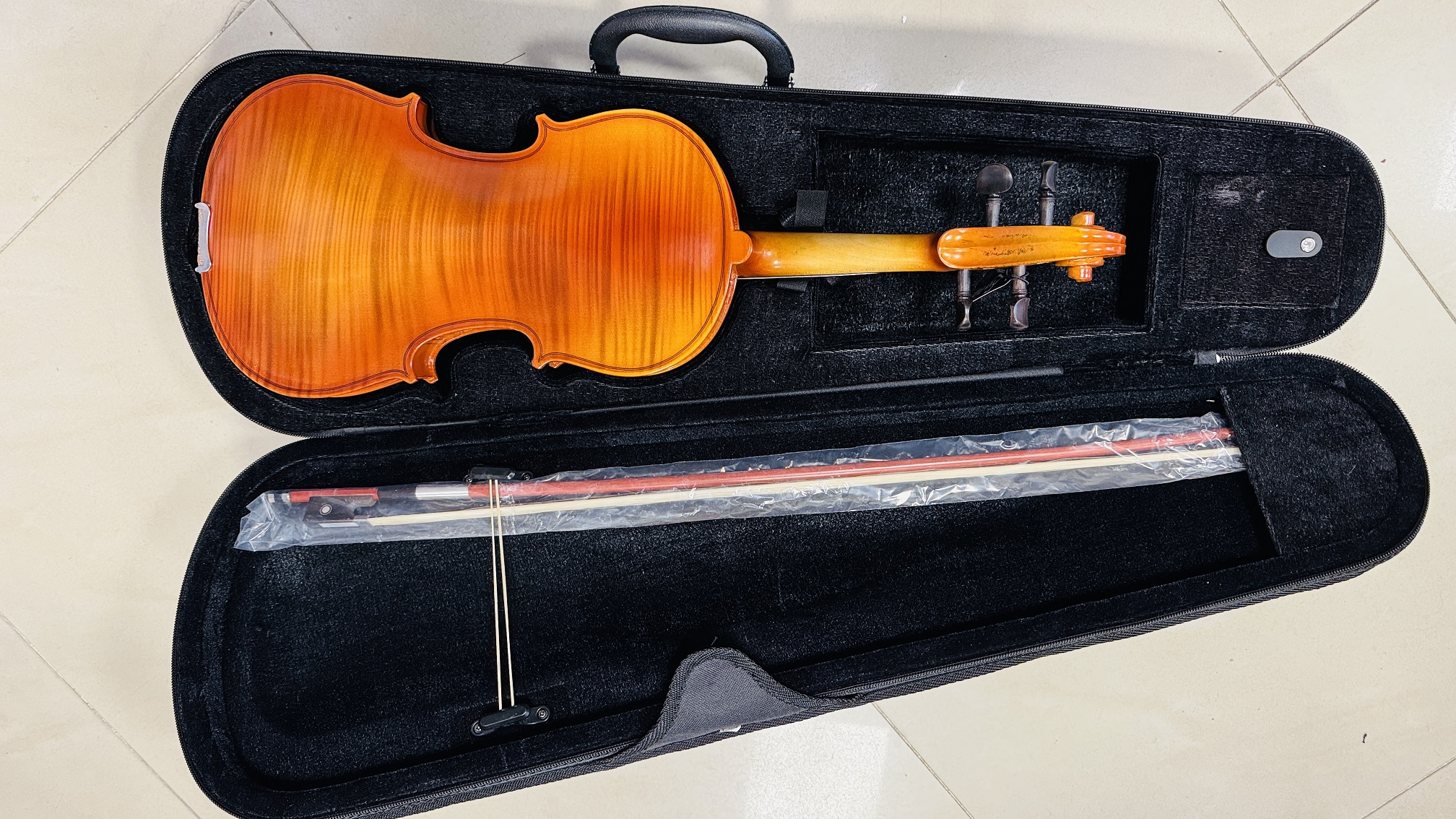 5. Futerał piankowy: Skrzypce sprzedawane są z lekkim futerałem piankowym, który zapewnia odpowiednią ochronę instrumentu podczas transportu, umożliwiając bezpieczne przechowywanie oraz łatwe zabranie skrzypiec na lekcje czy występy.