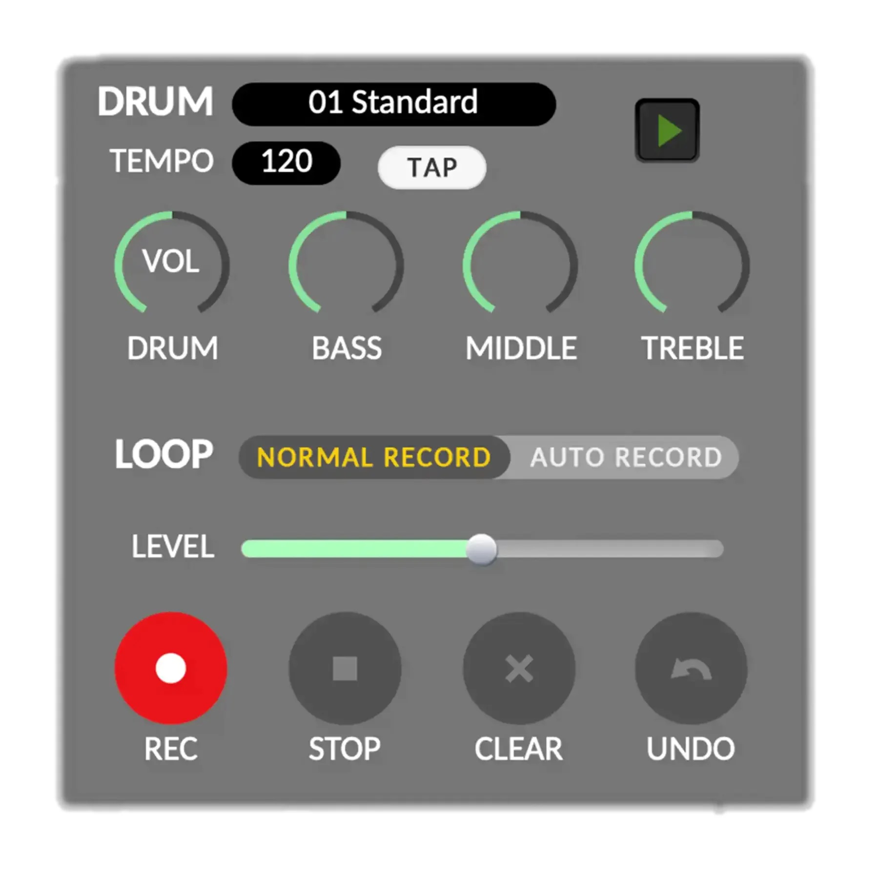 Twórz swoje pomysły i eksperymentuj z groove’ami dzięki 30-sekundowemu looperowi oraz automatycznie synchronizowanej maszynie perkusyjnej.